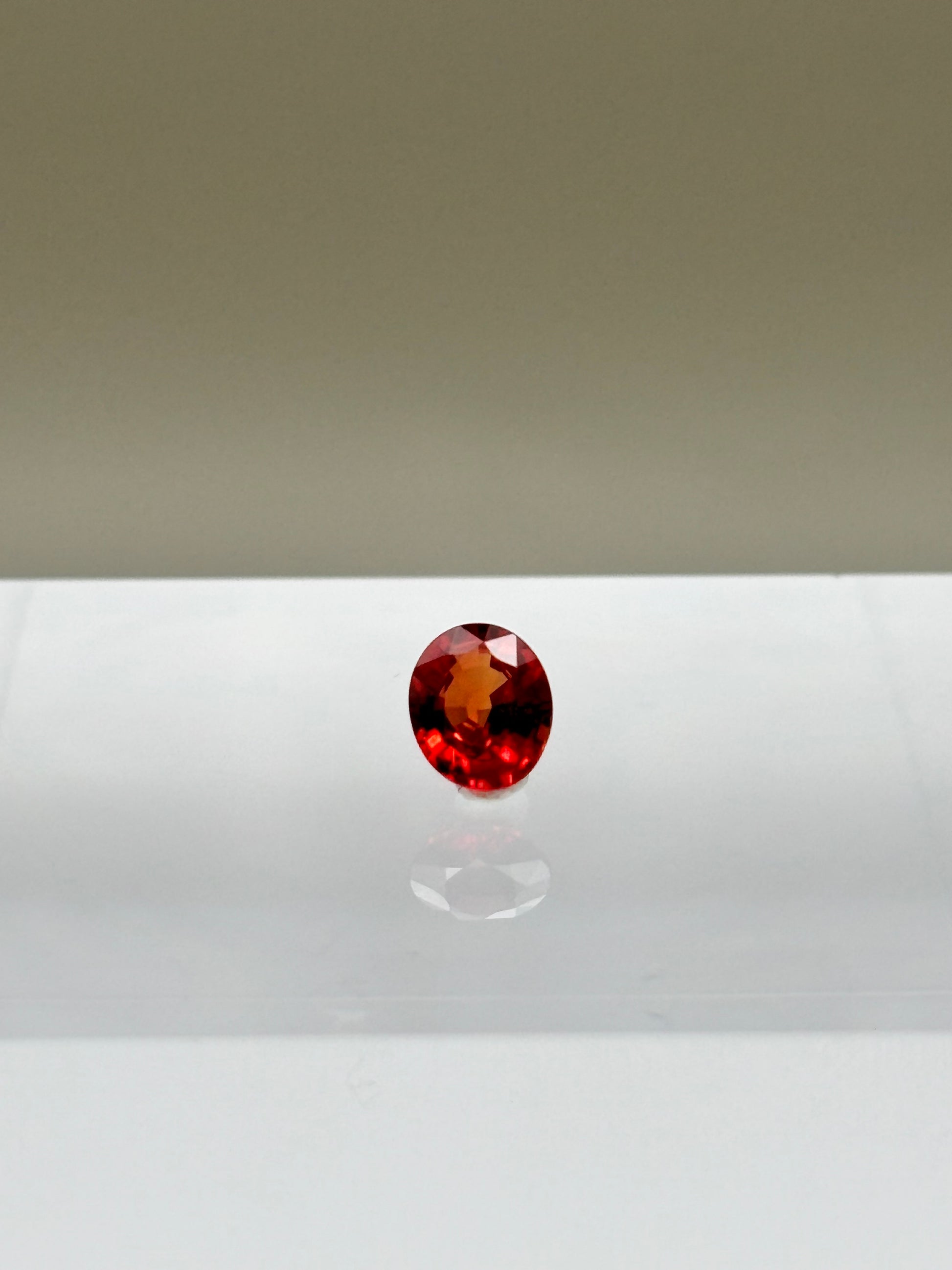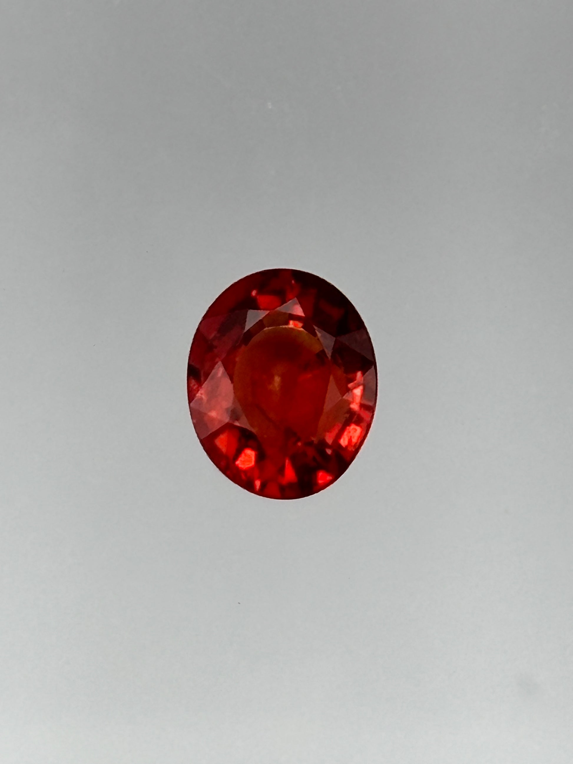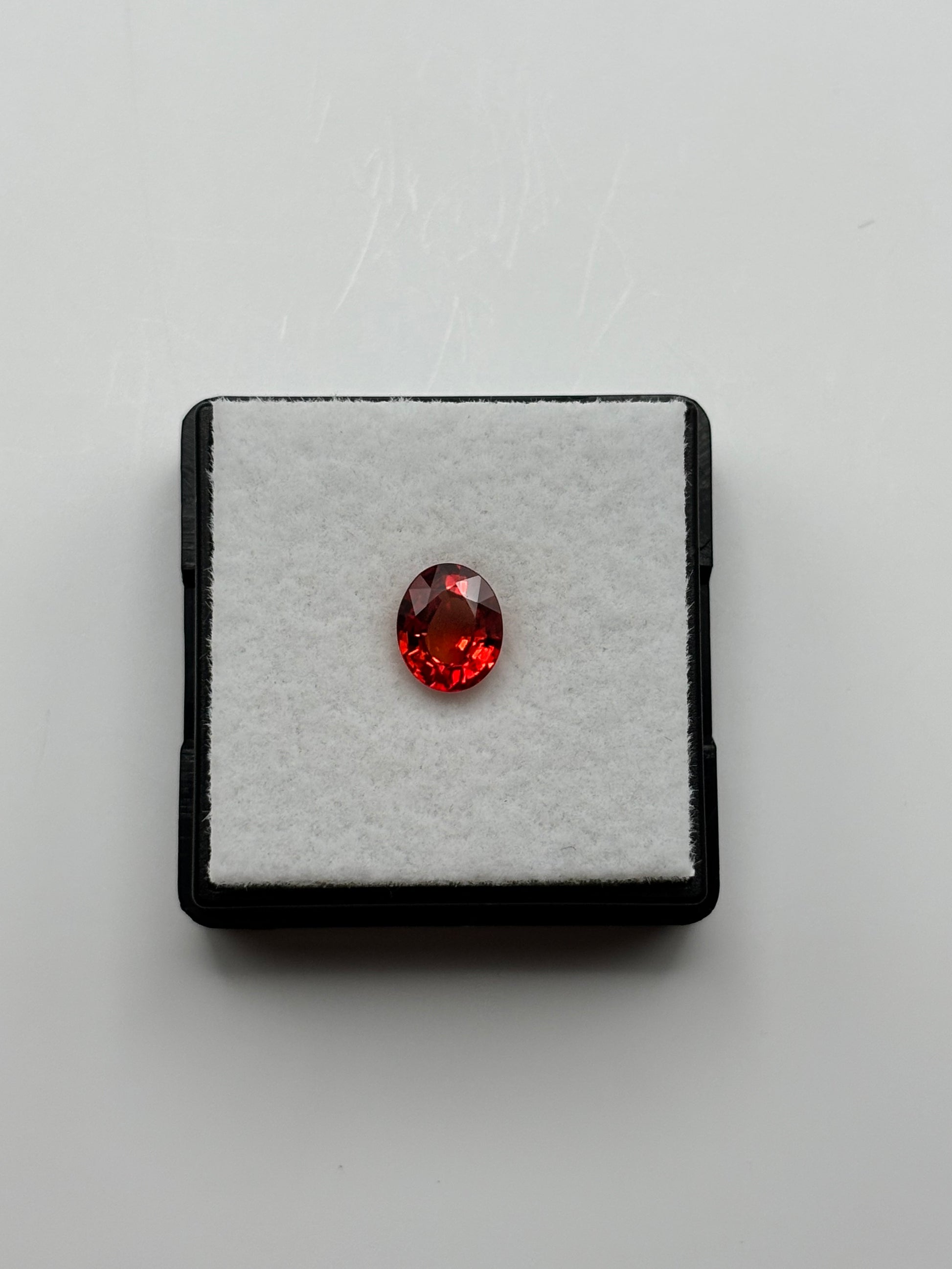 A vivid 1.01 carat natural orange-red sapphire with an oval cut that radiates fiery brilliance. Sourced from Tanzania, this gemstone showcases a rich blend of deep red with flashes of orange, offering exceptional vibrancy. It's eye-clean clarity (IF) and very good luster highlight its fine cutting and light performance. Heat-treated to enhance its natural color, this sapphire is perfect for a bold statement ring or pendant.