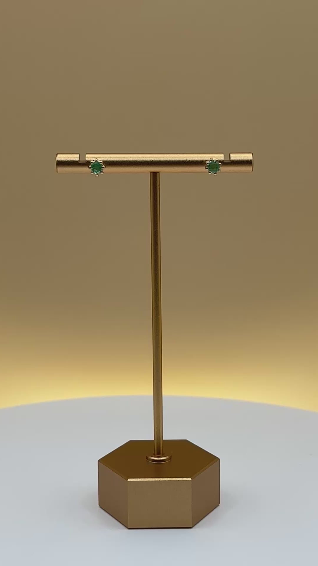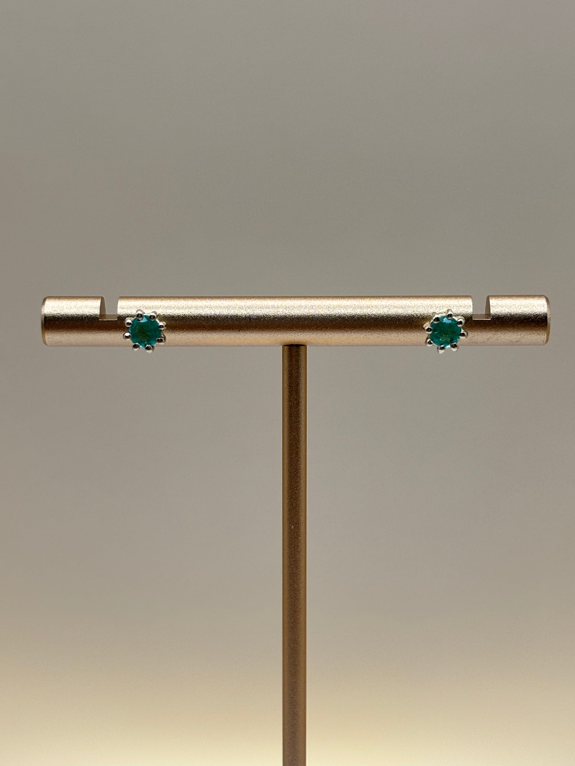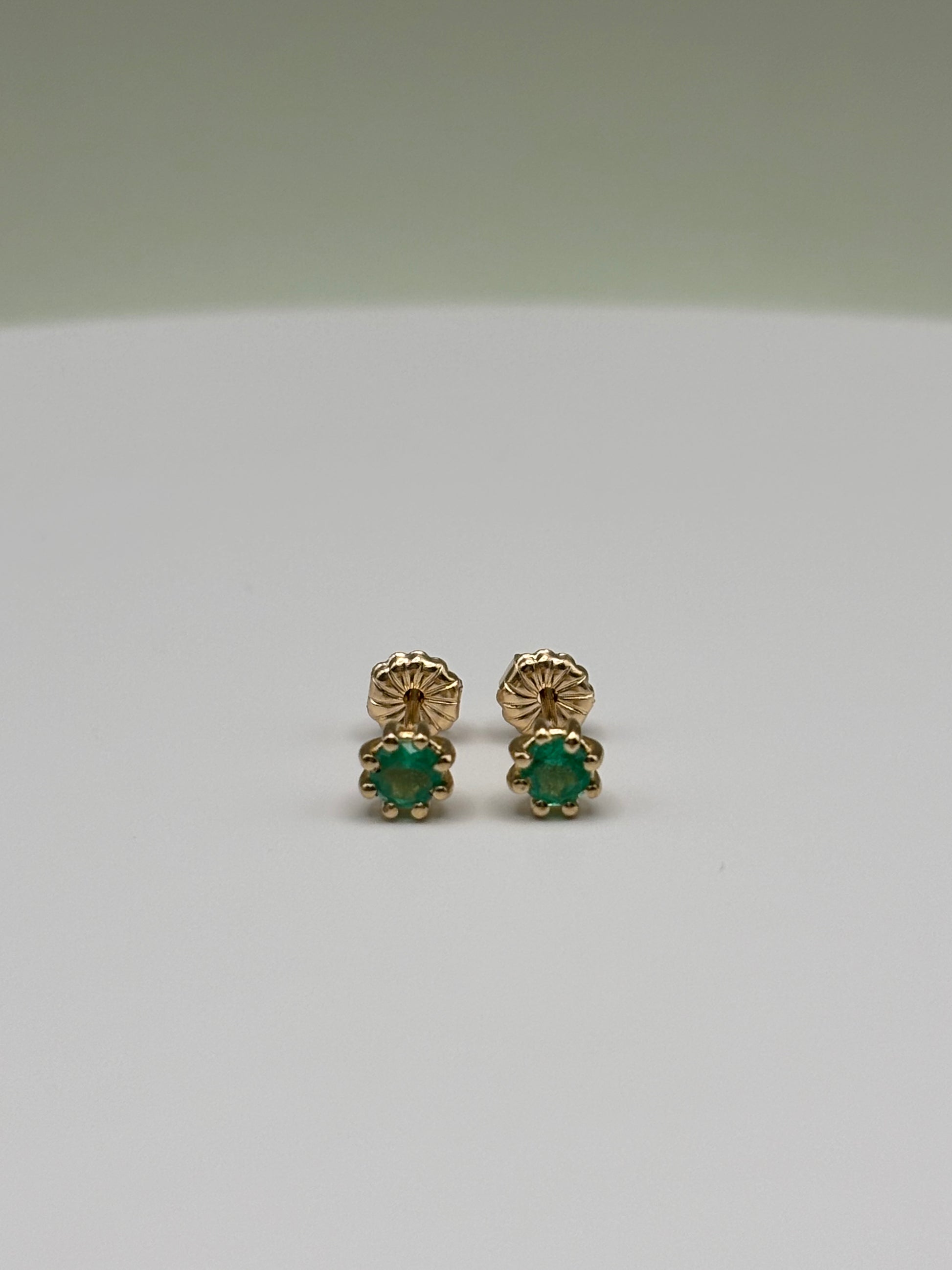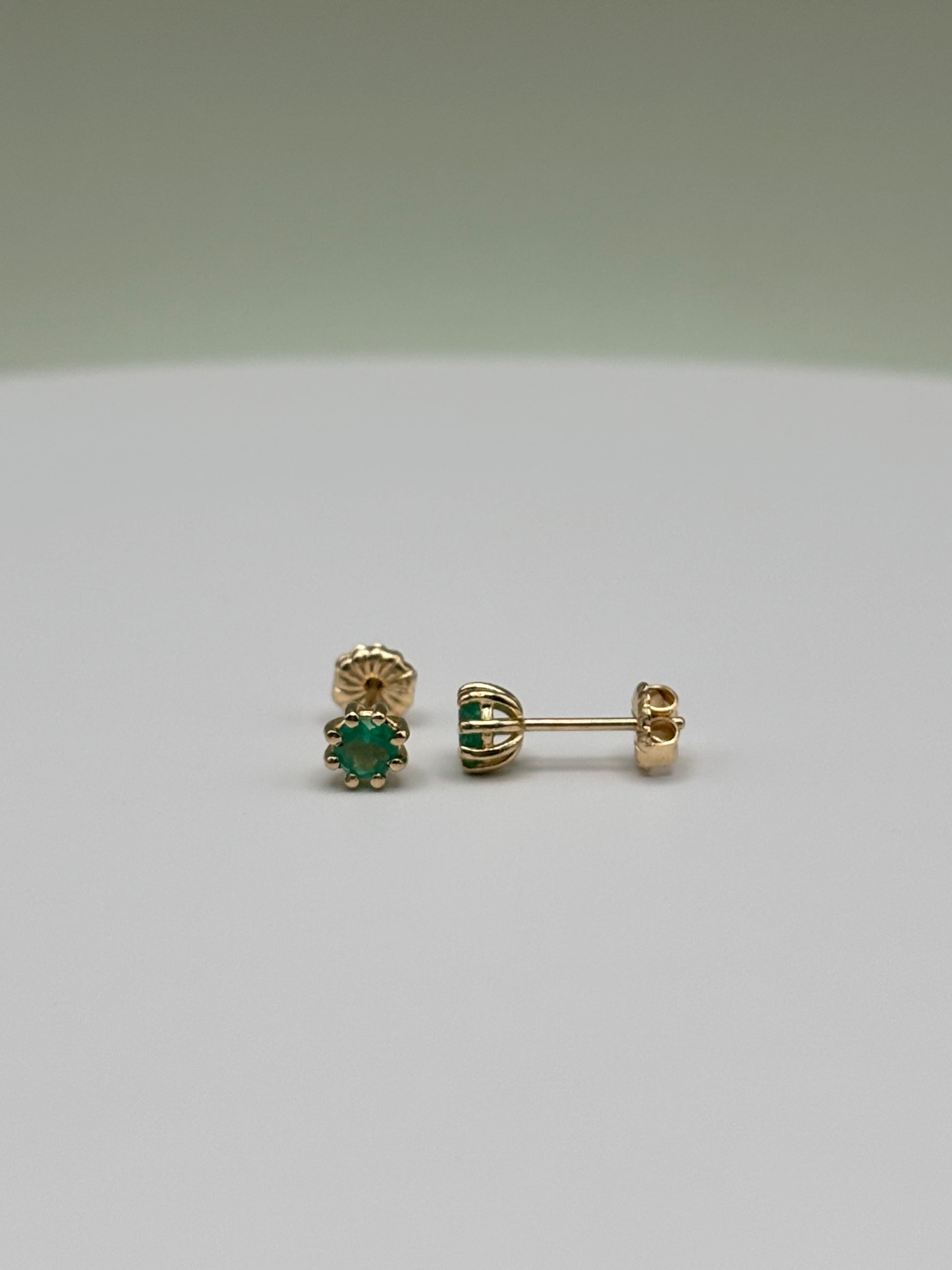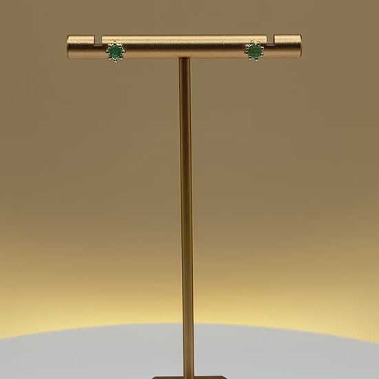 Timeless stud earrings featuring natural Colombian emeralds in a secure 8-prong basket setting. Handcrafted in 14k yellow gold, these earrings highlight the vivid green hue of Colombian emeralds, making them perfect for everyday elegance or gifting.