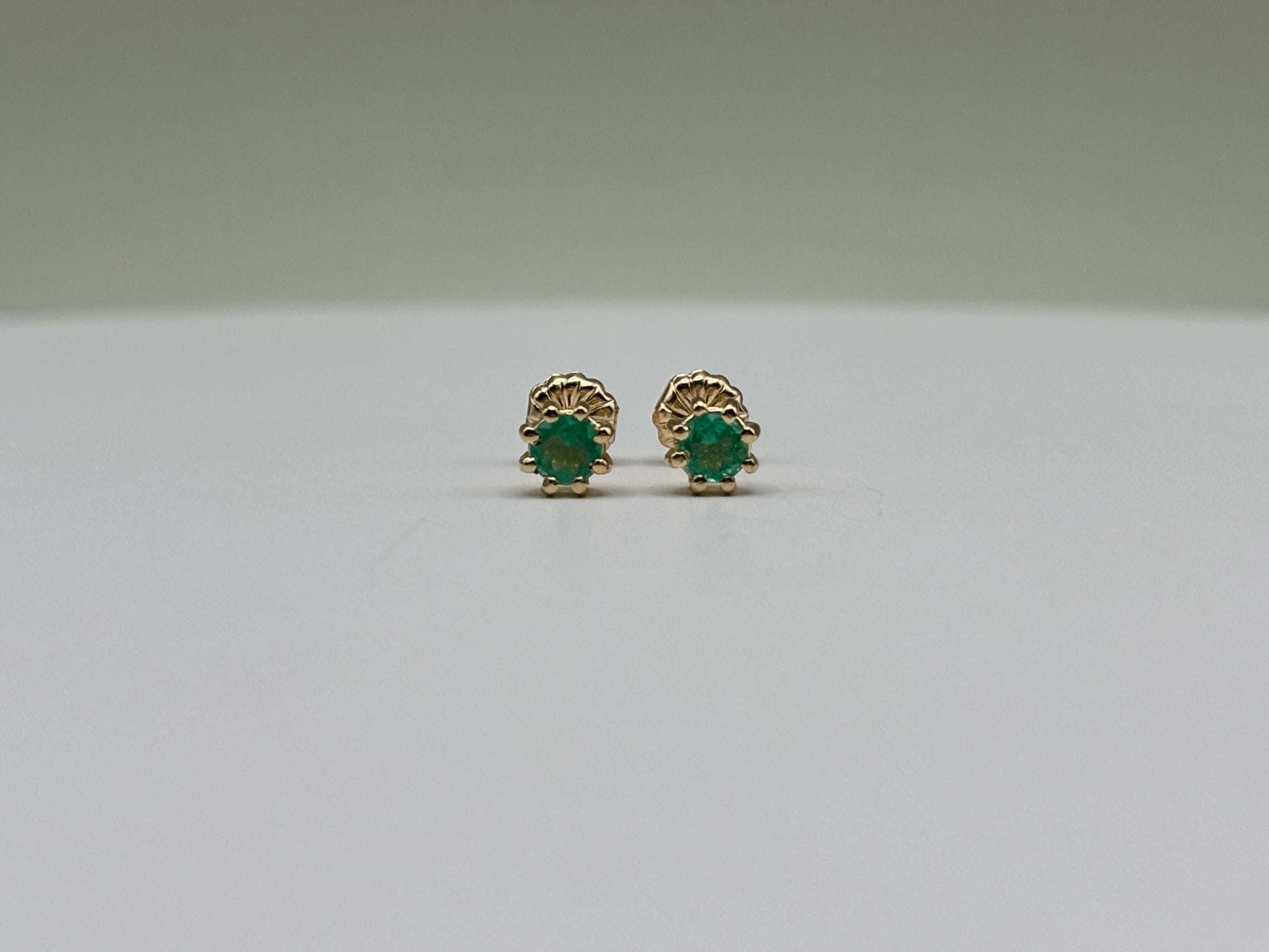 14k Yellow Gold Colombian Emerald Stud Earrings - 0.38 cttw