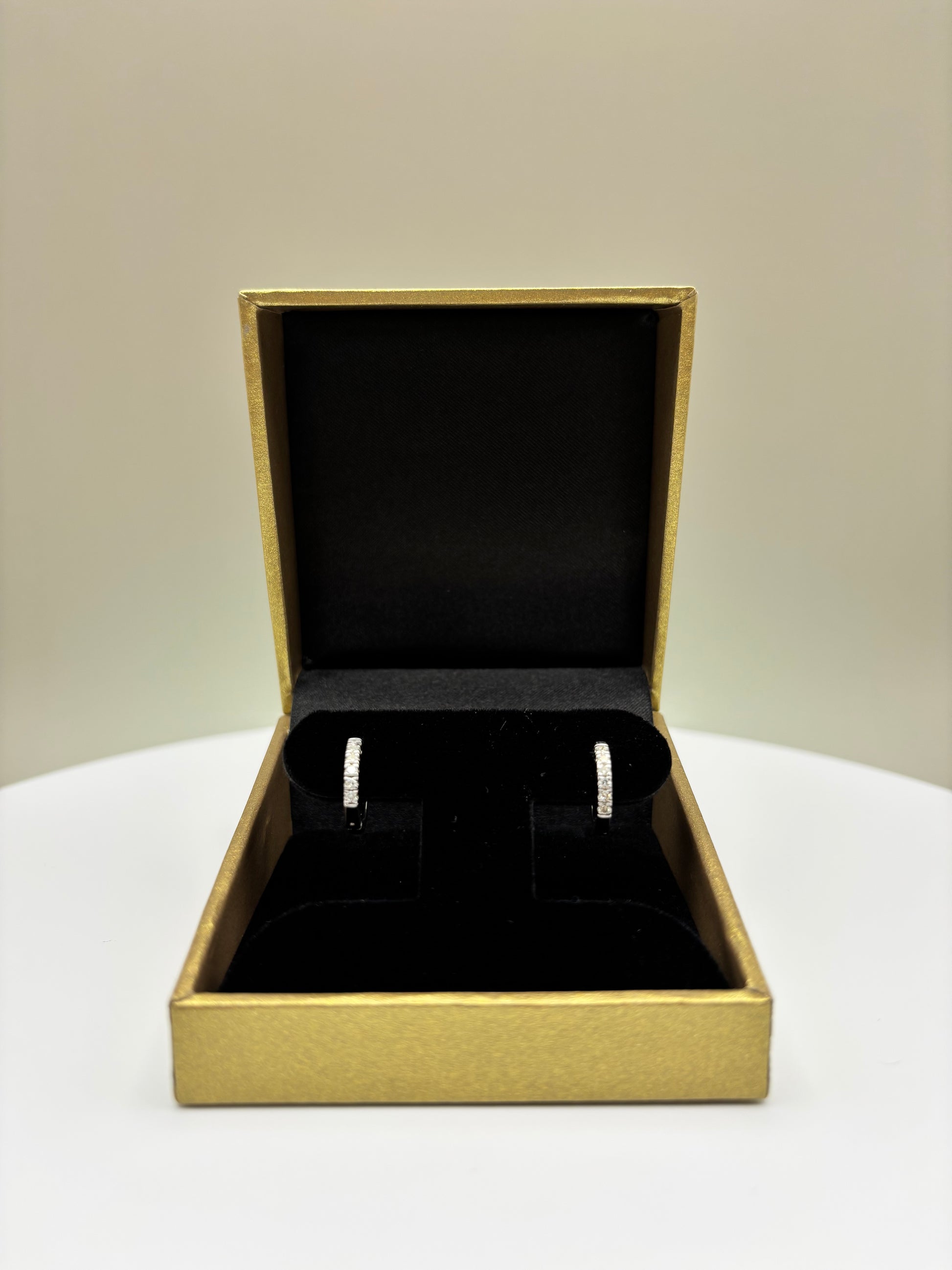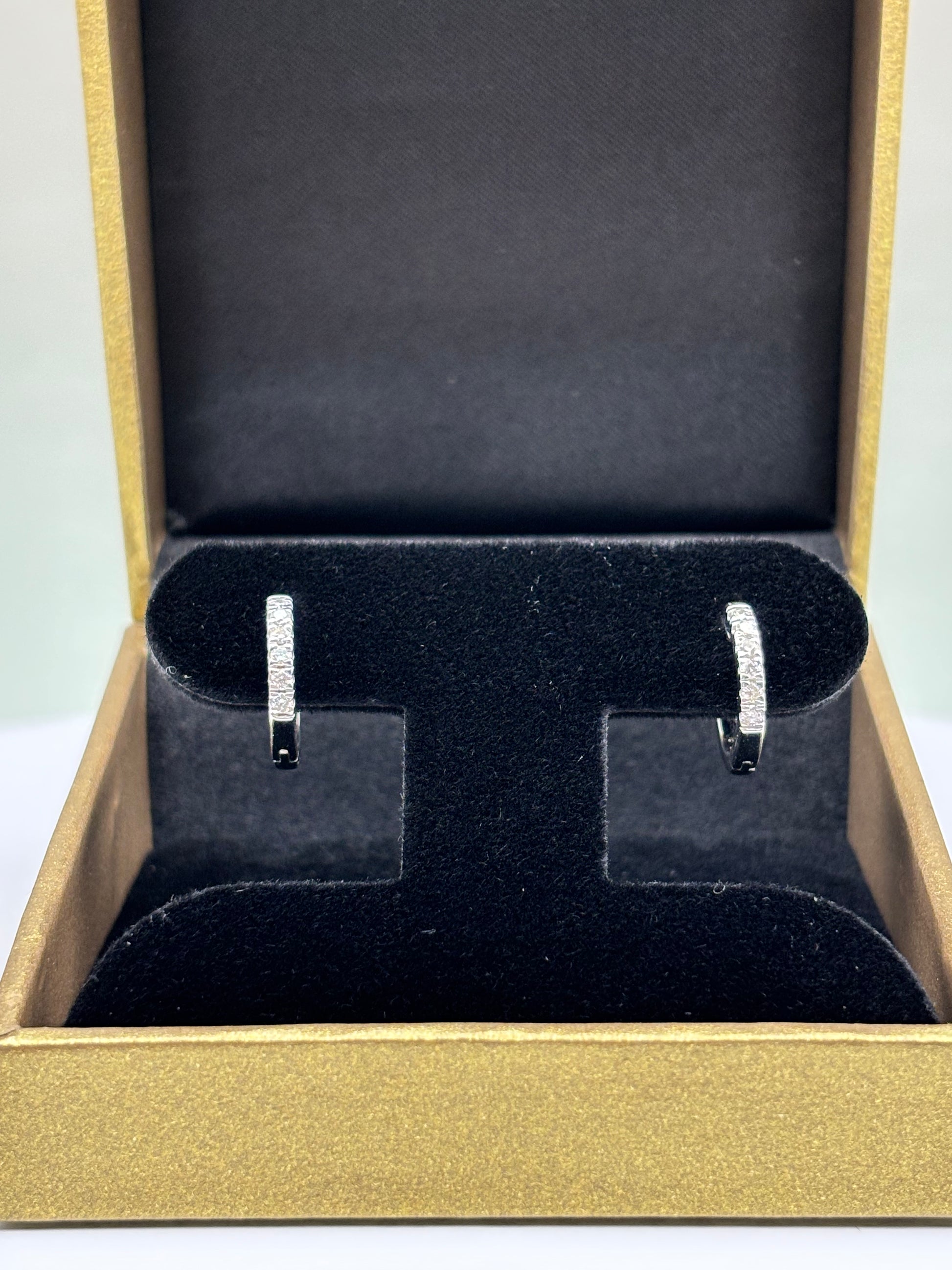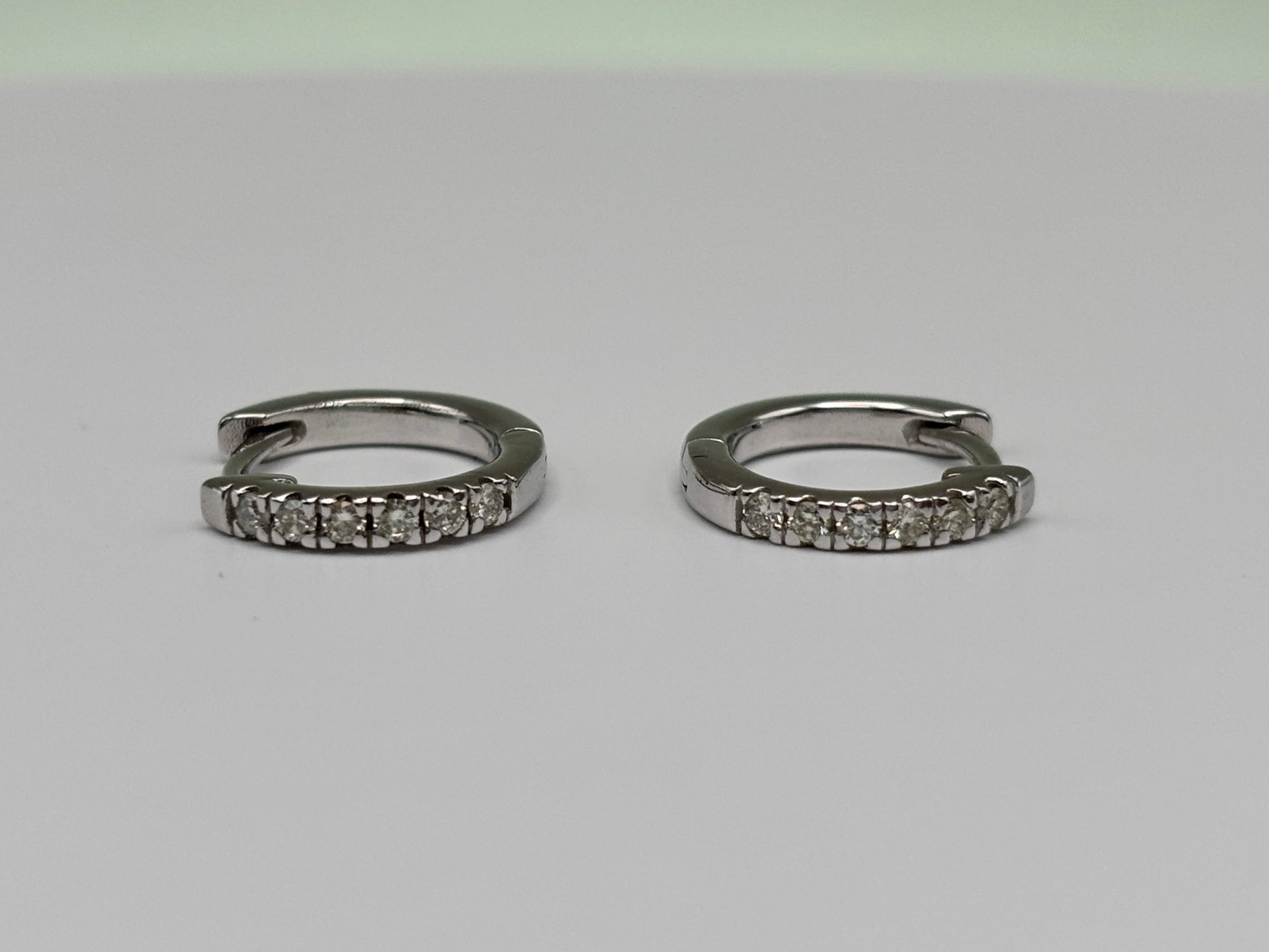 These sleek 14k white gold huggie earrings are set with 0.30 carats of natural diamonds. Designed to hug the earlobe comfortably, they offer a perfect mix of sparkle and elegance for daily wear or special occasions.