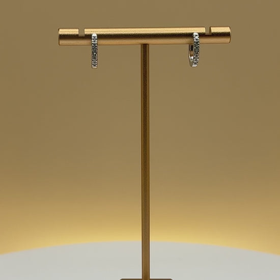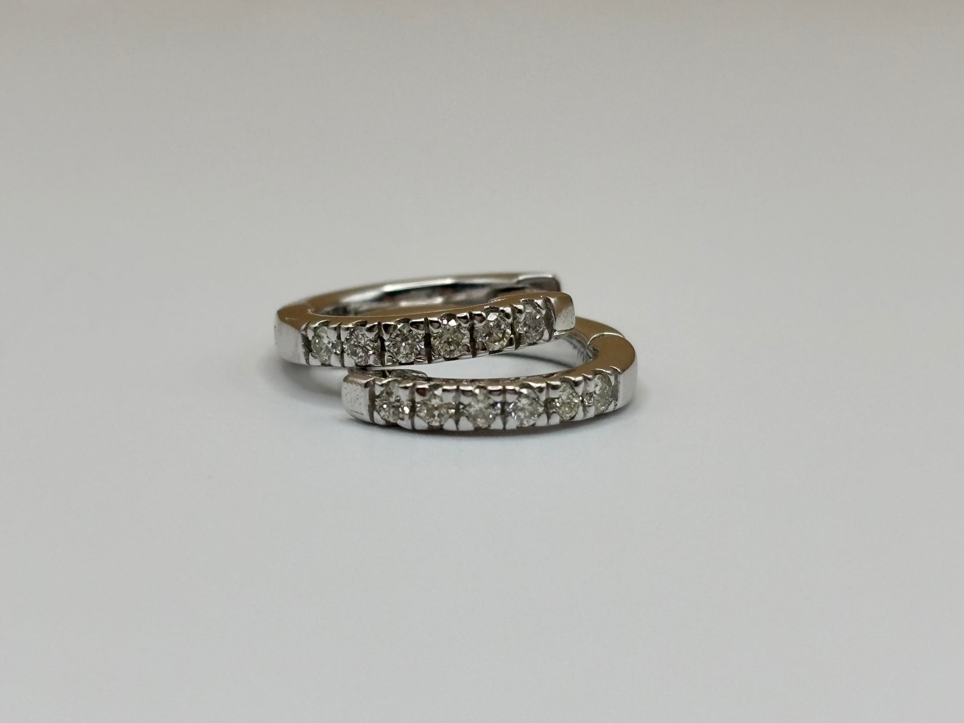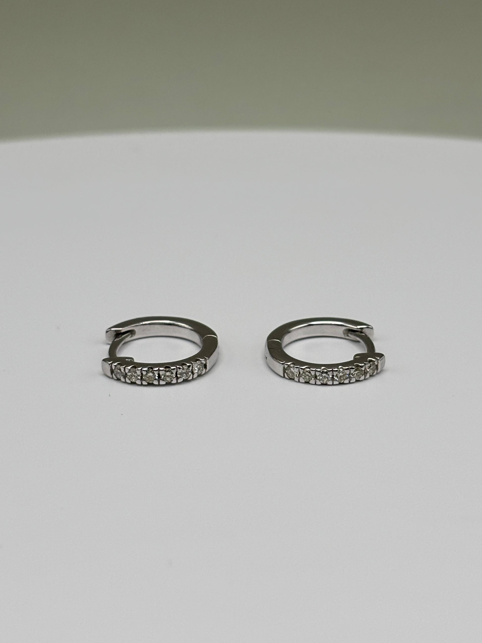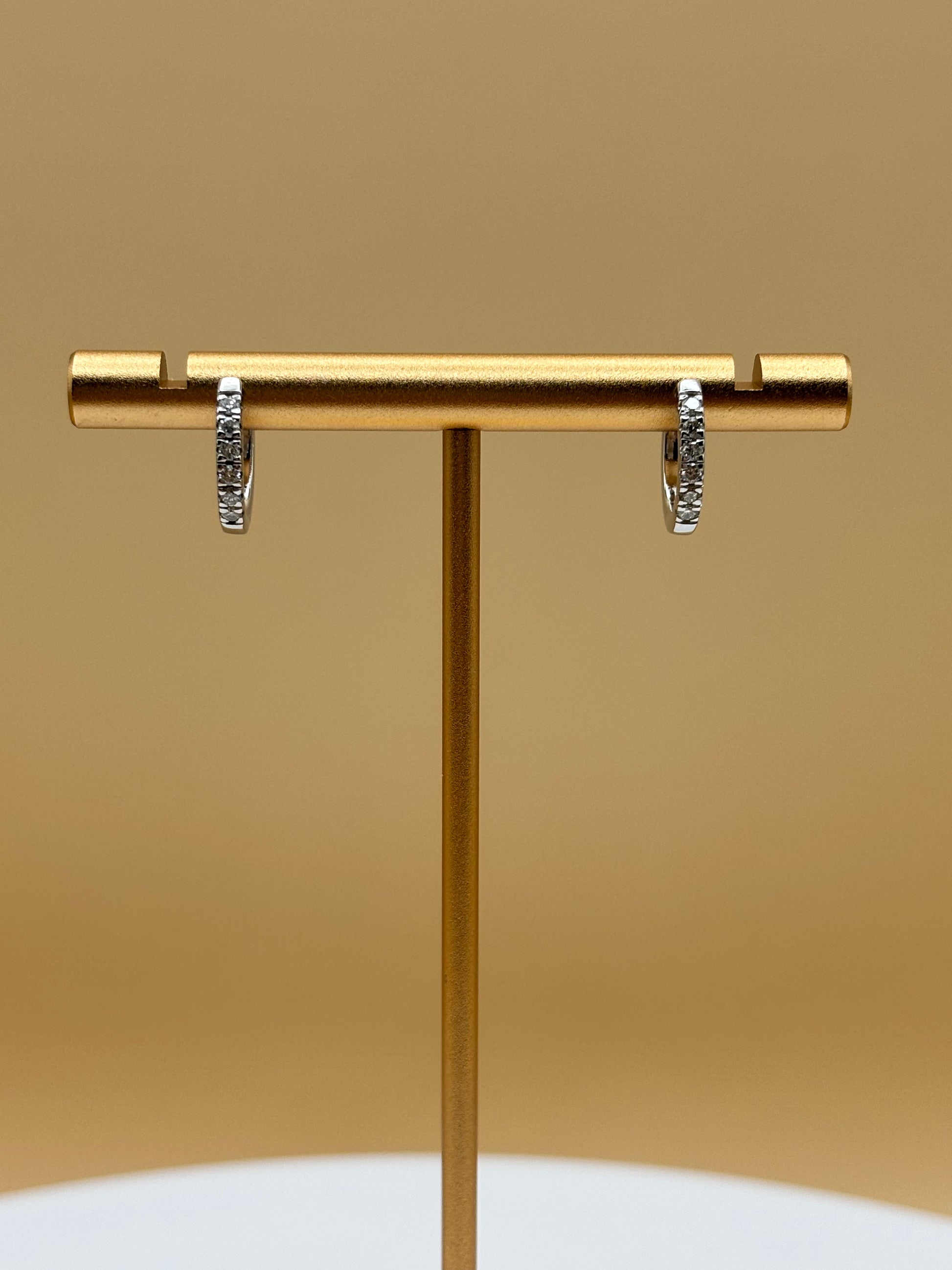These sleek 14k white gold huggie earrings are set with 0.30 carats of natural diamonds. Designed to hug the earlobe comfortably, they offer a perfect mix of sparkle and elegance for daily wear or special occasions.