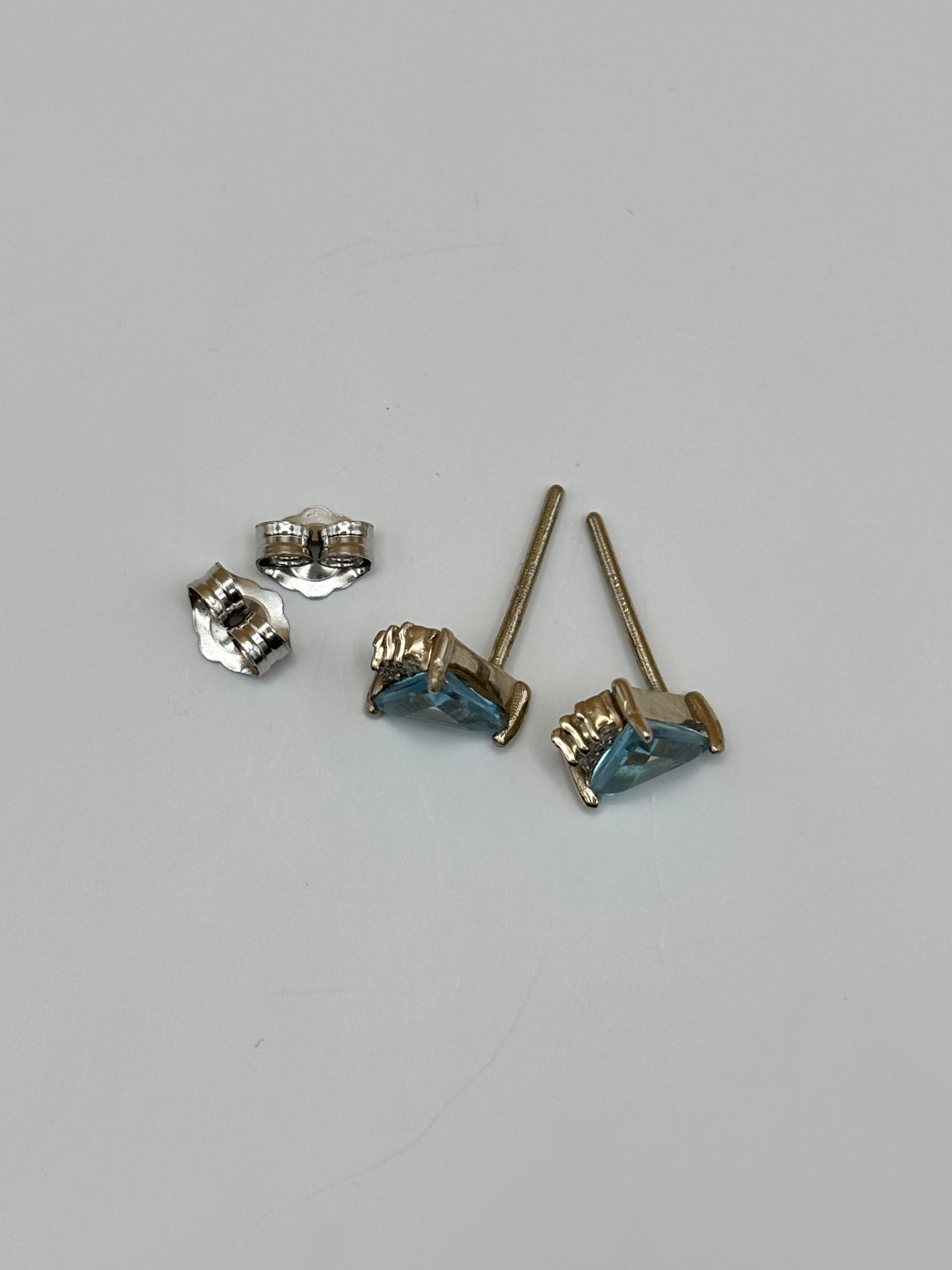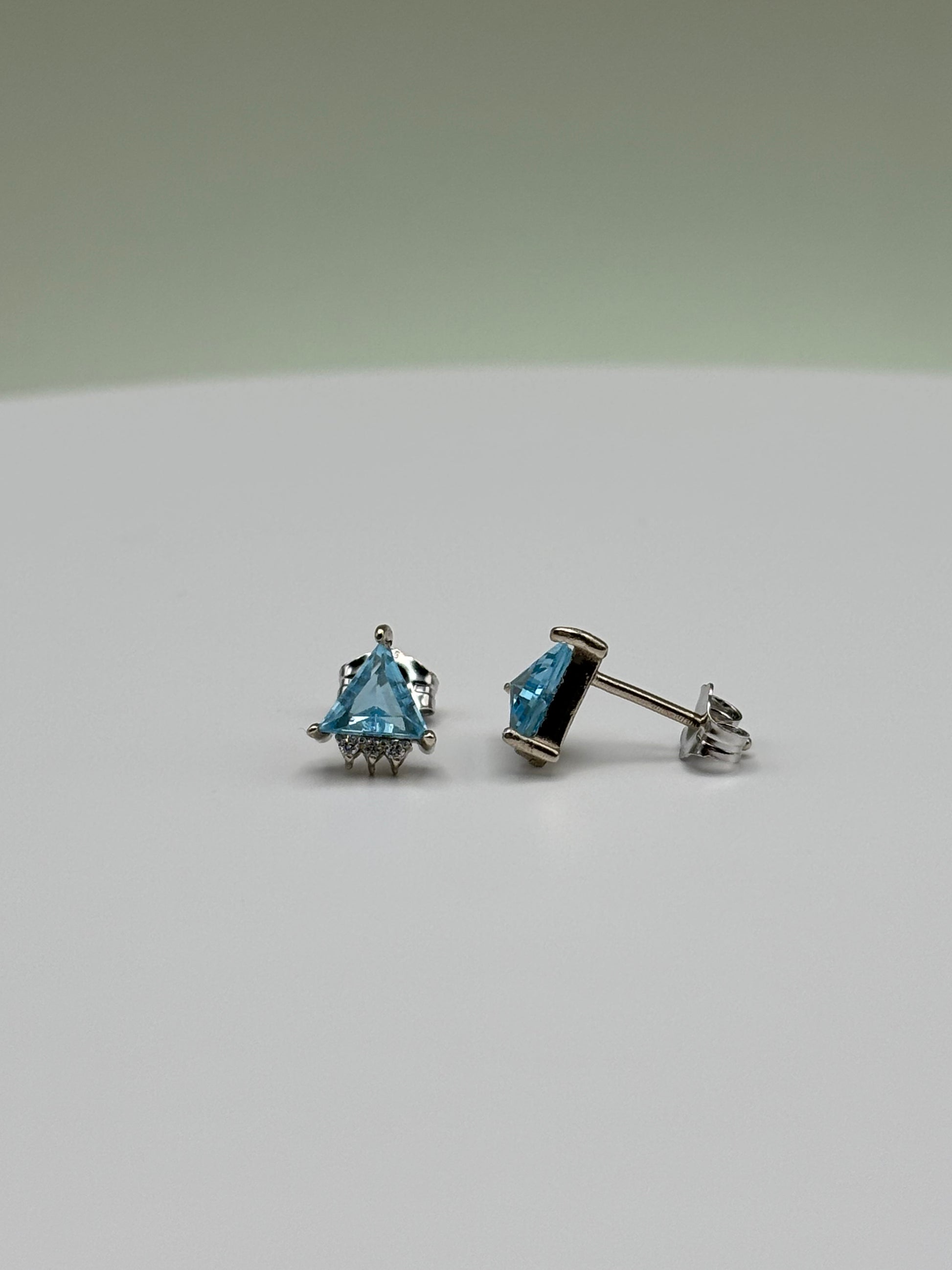 14k White Gold Natural Swiss Blue Topaz & Diamond Studs - 1.17 cttw