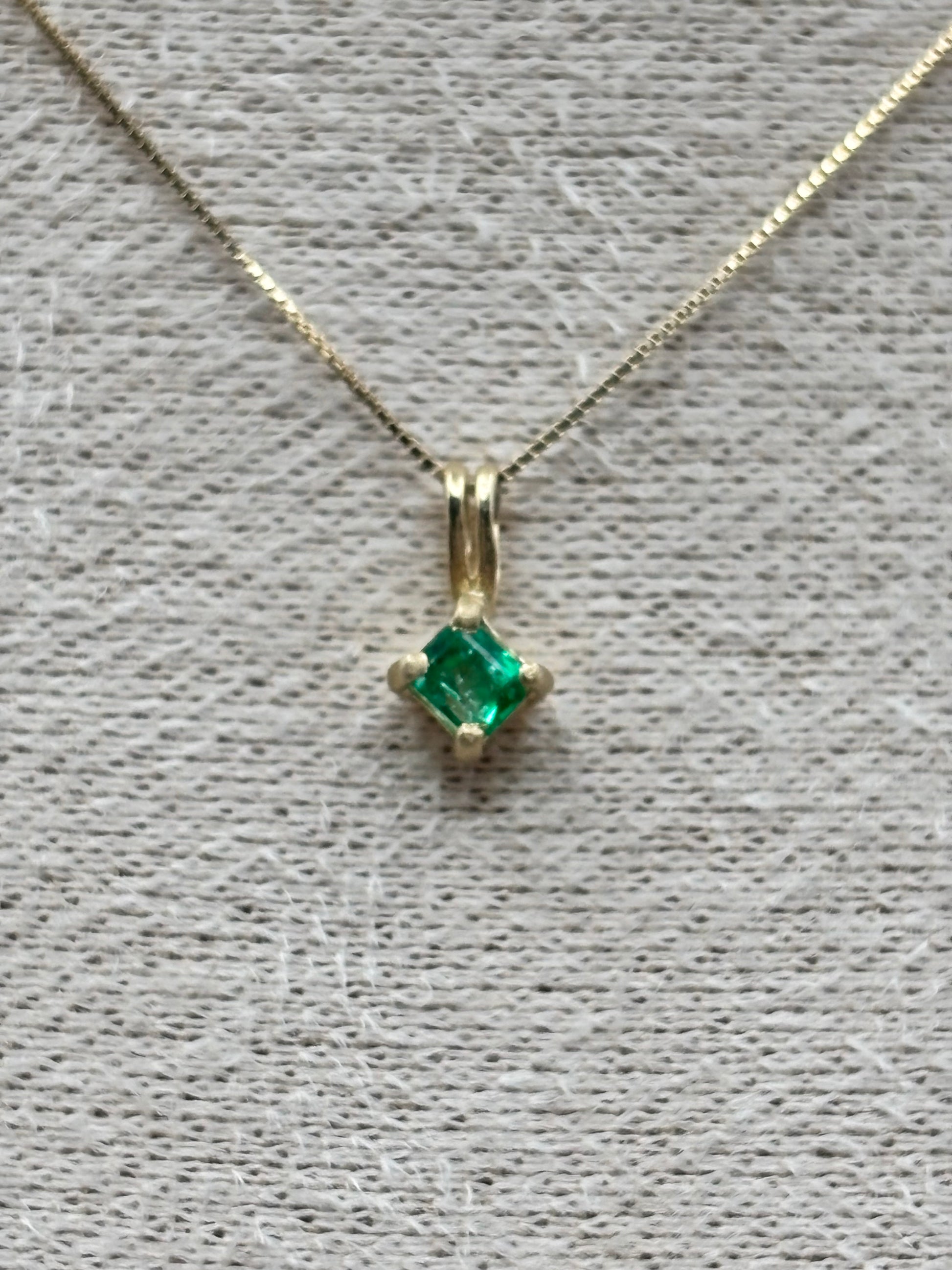 14k Yellow Gold Asscher-Cut Colombian Emerald Pendant with 18" Box Chain - 0.17 ct