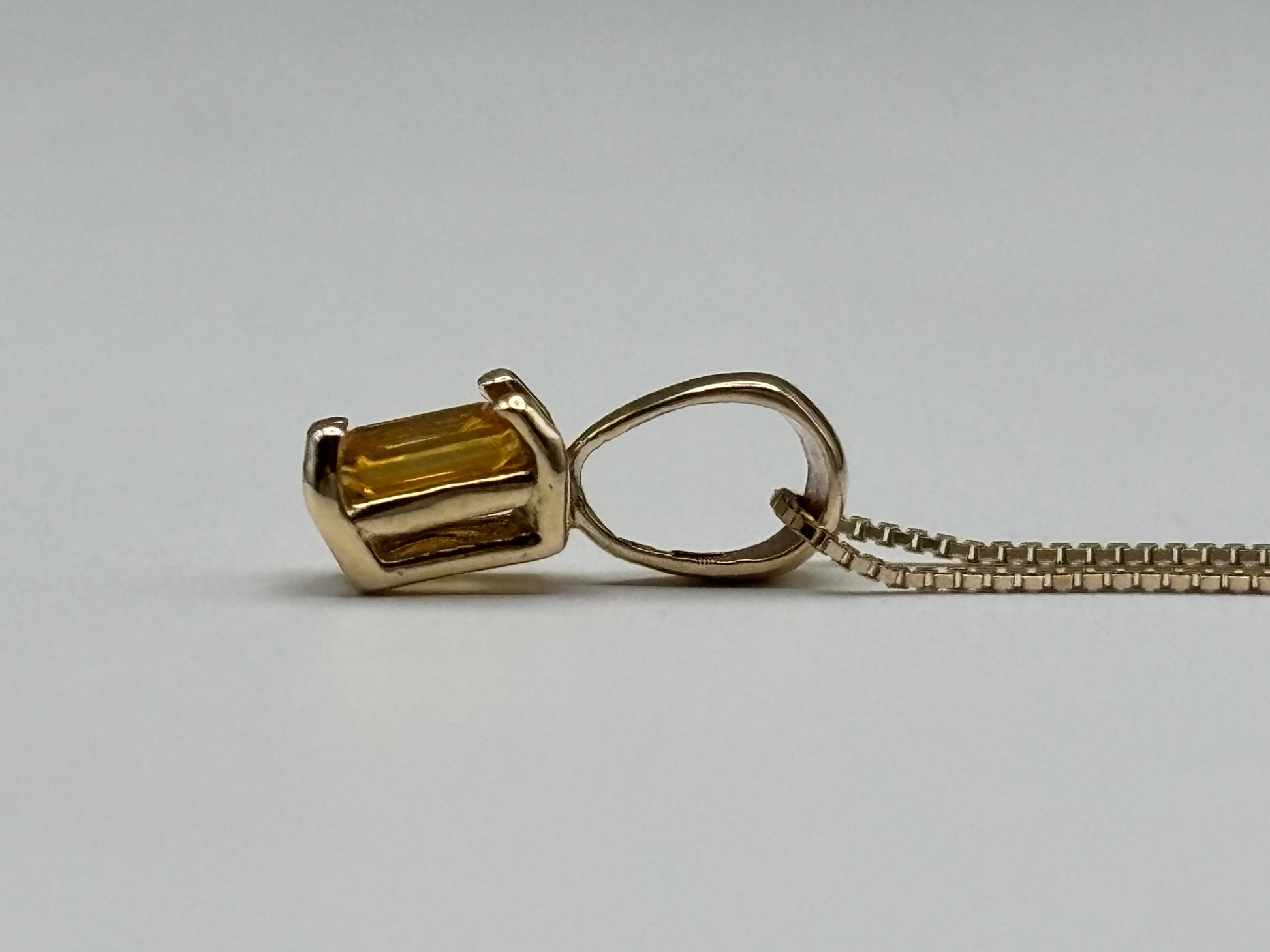 14k Yellow Gold Emerald-Cut Natural Yellow Ceylon Sapphire with 18" Box Chain - 0.20 ct