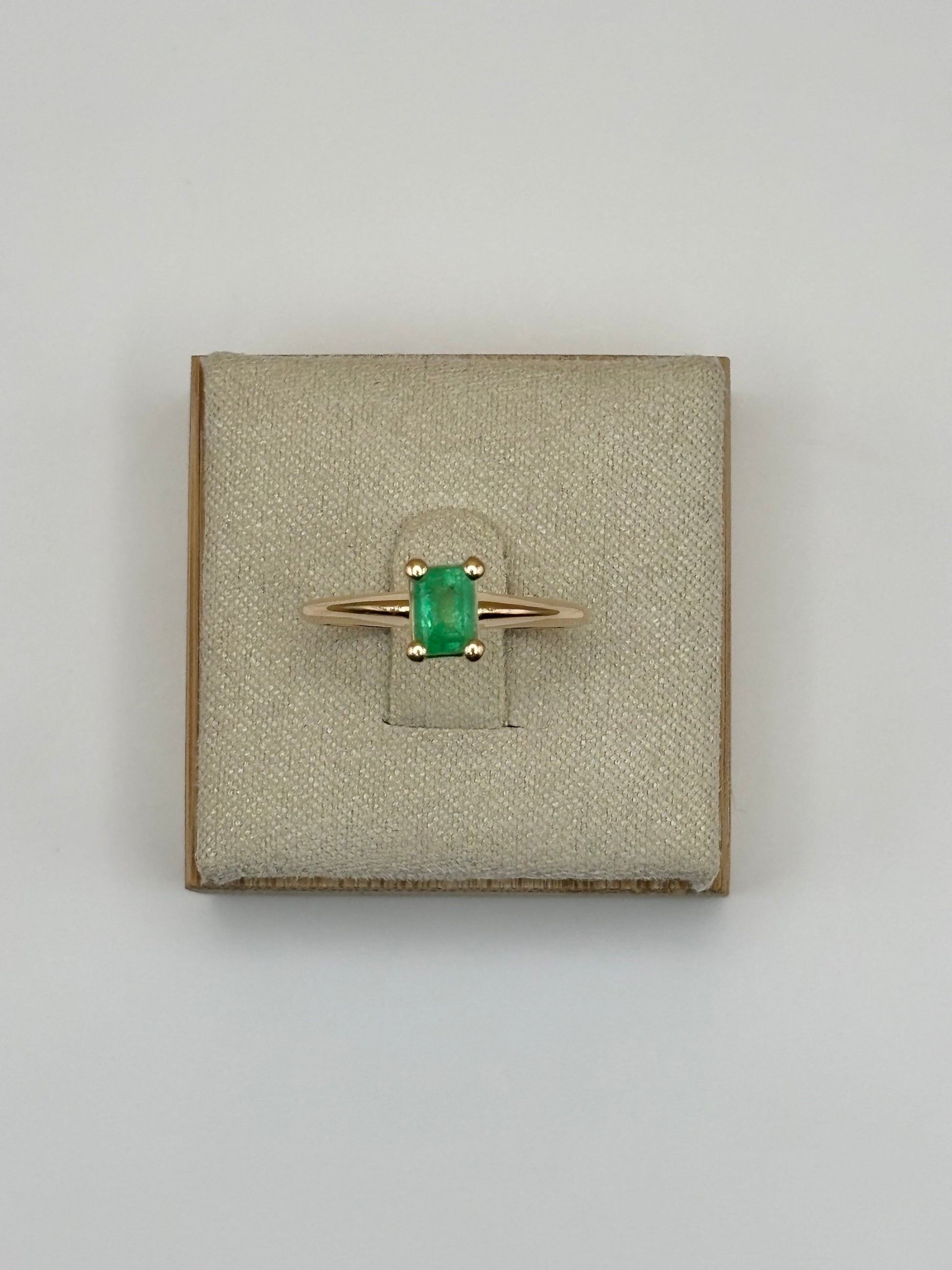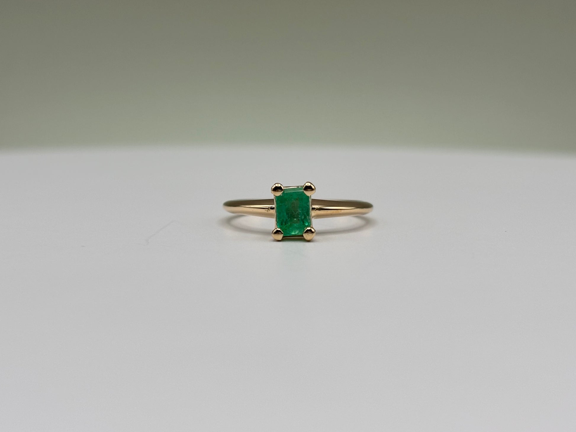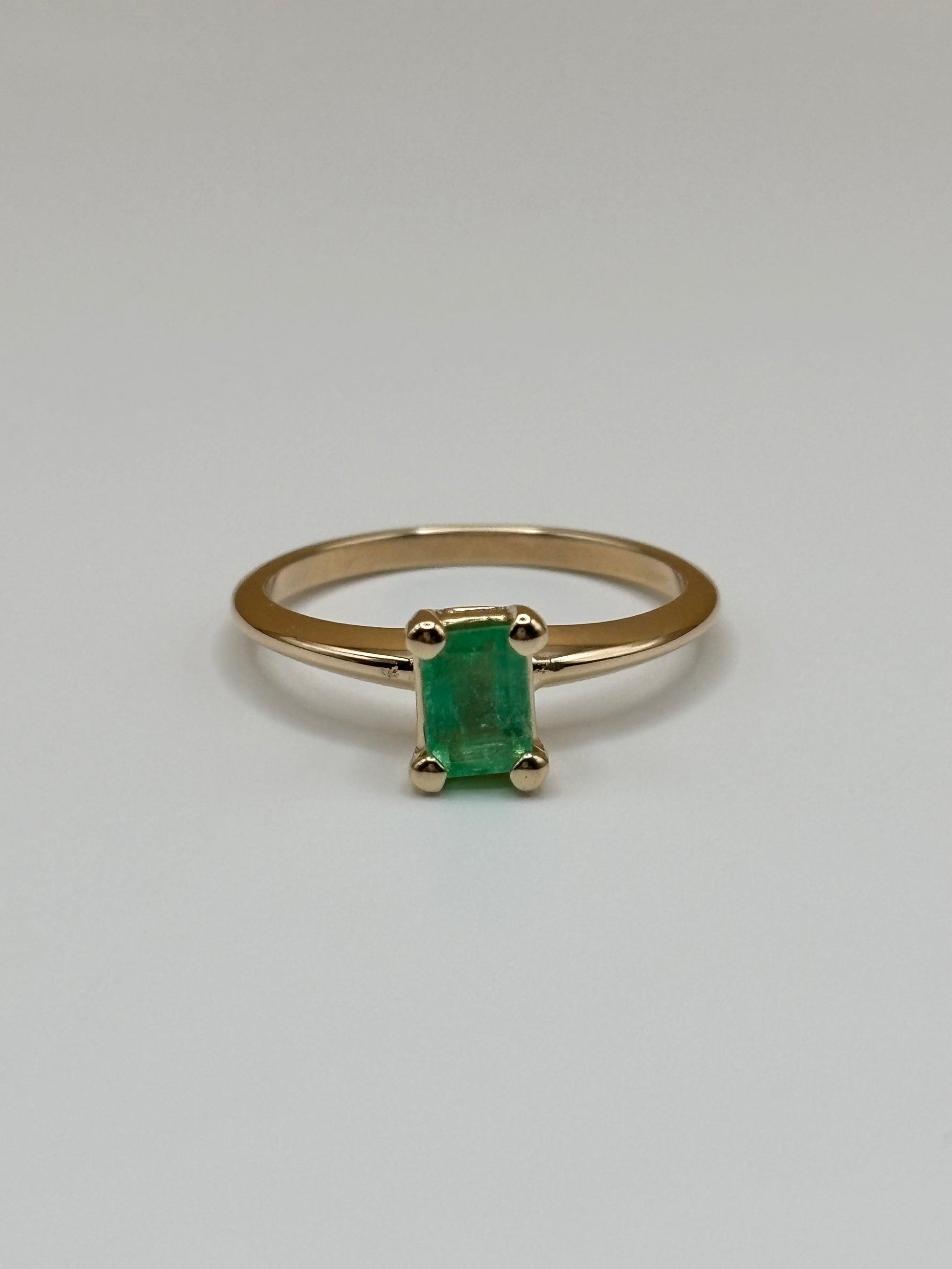 This elegant solitaire ring features a 0.51 carat natural emerald, set in a classic four-prong design that highlights the stone's vibrant green color. Crafted in solid 14k yellow gold with a smooth high-polish finish, the piece offers timeless style and sophistication. A versatile ring that makes a beautiful statement for everyday wear or as a meaningful gift.
