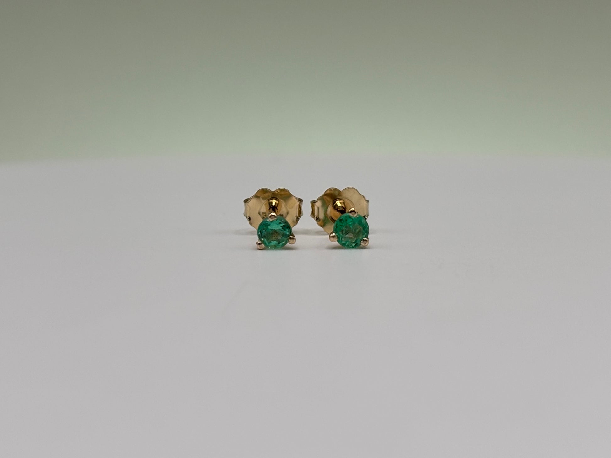 14k Yellow Gold Round Colombian Emerald Stud Earrings - 0.38 cttw