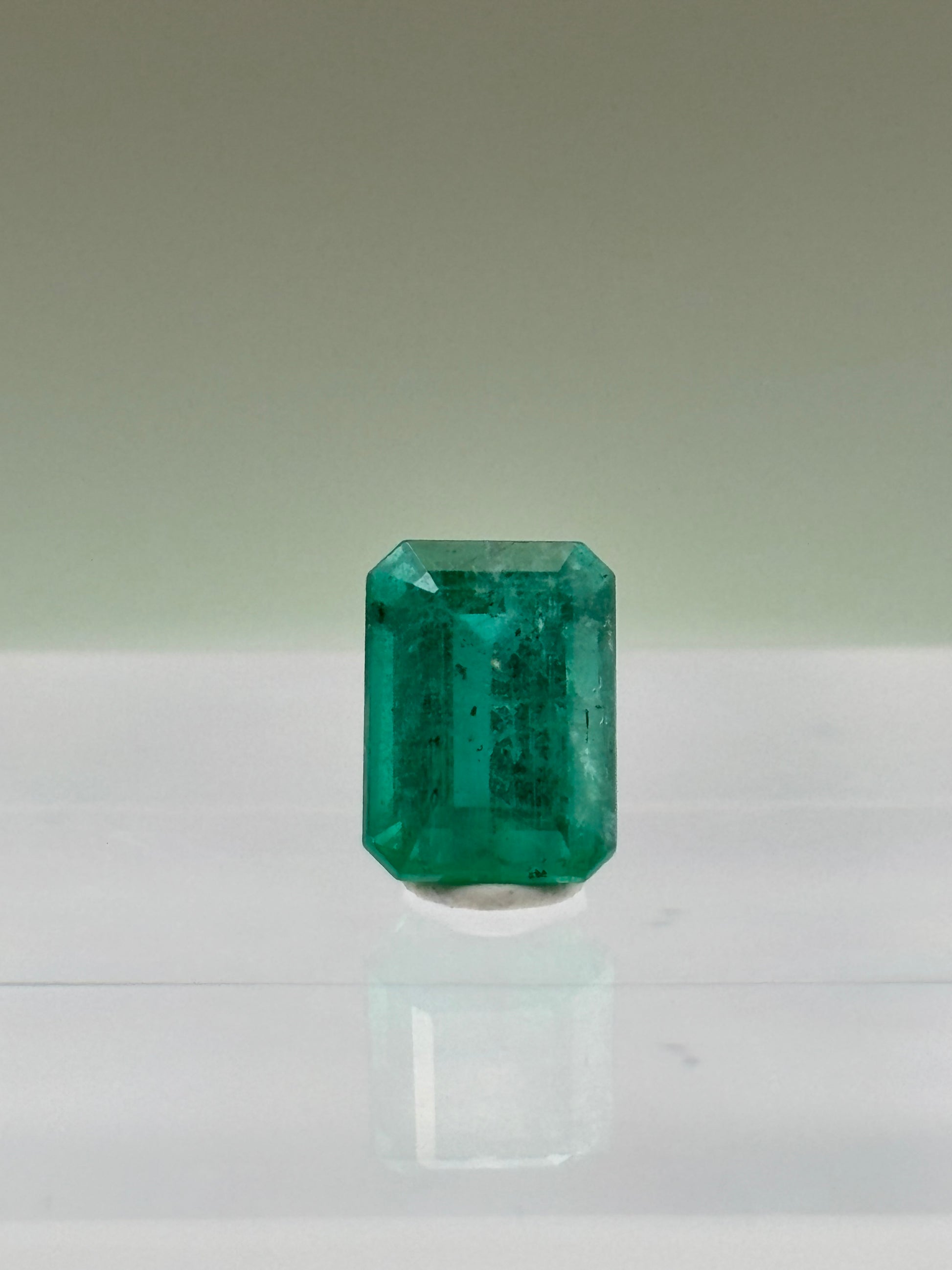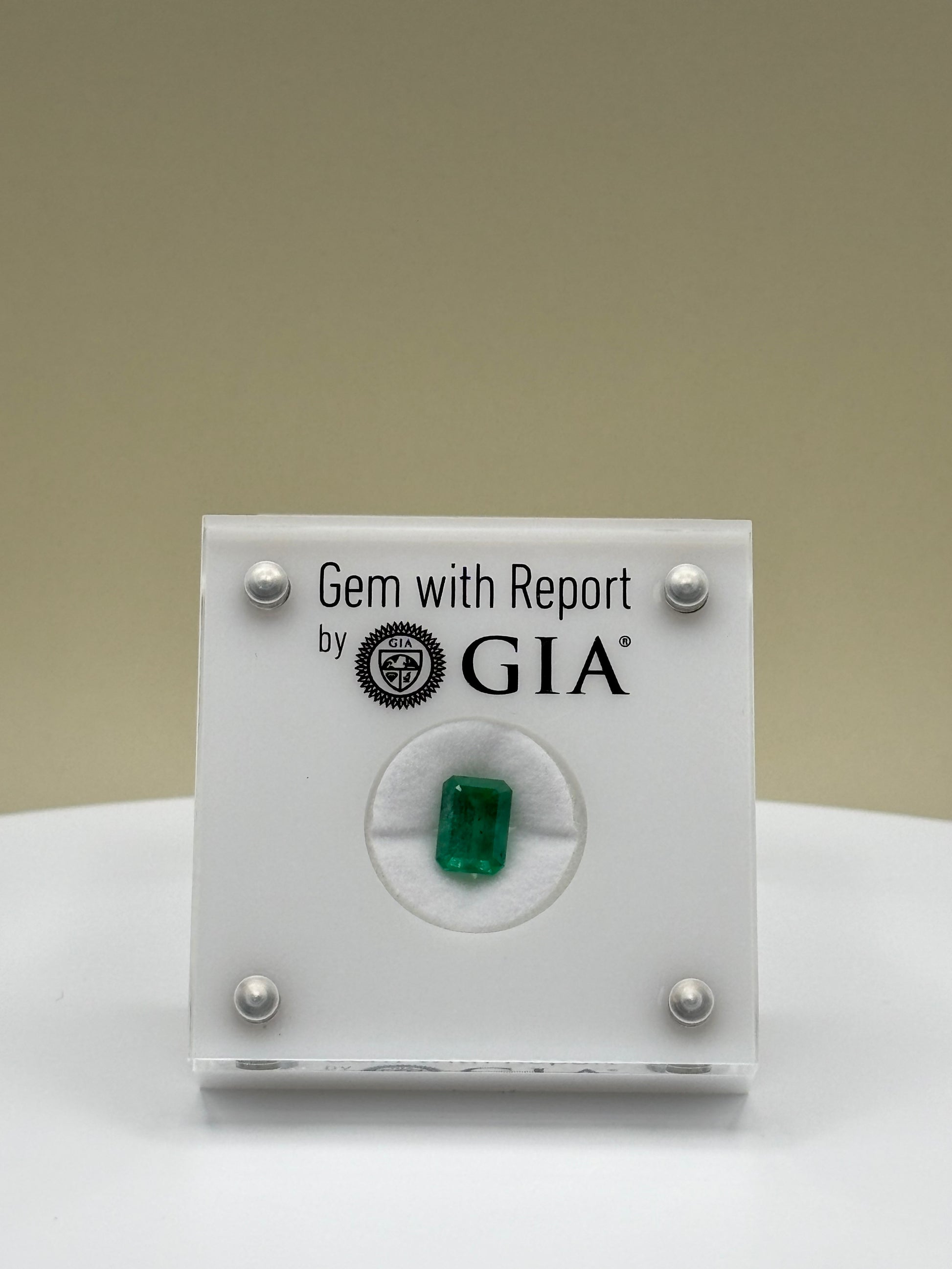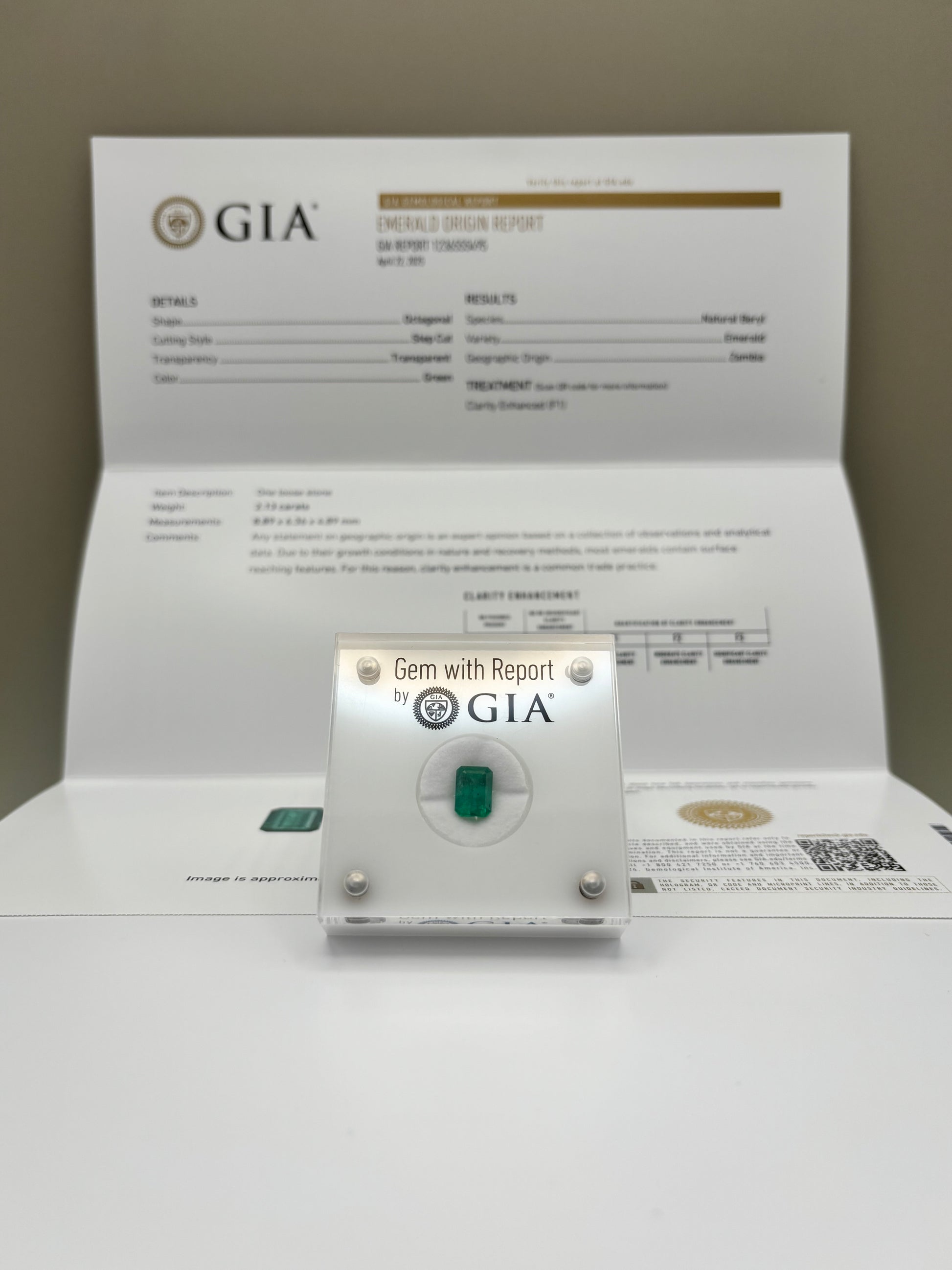 A vivid 2.13 ct Zambian emerald with very good lust and balanced transparency. Octagonal step cut, GIA certified, and clarity enhanced (F1) - a timeless gem for a custom jewelry creation.