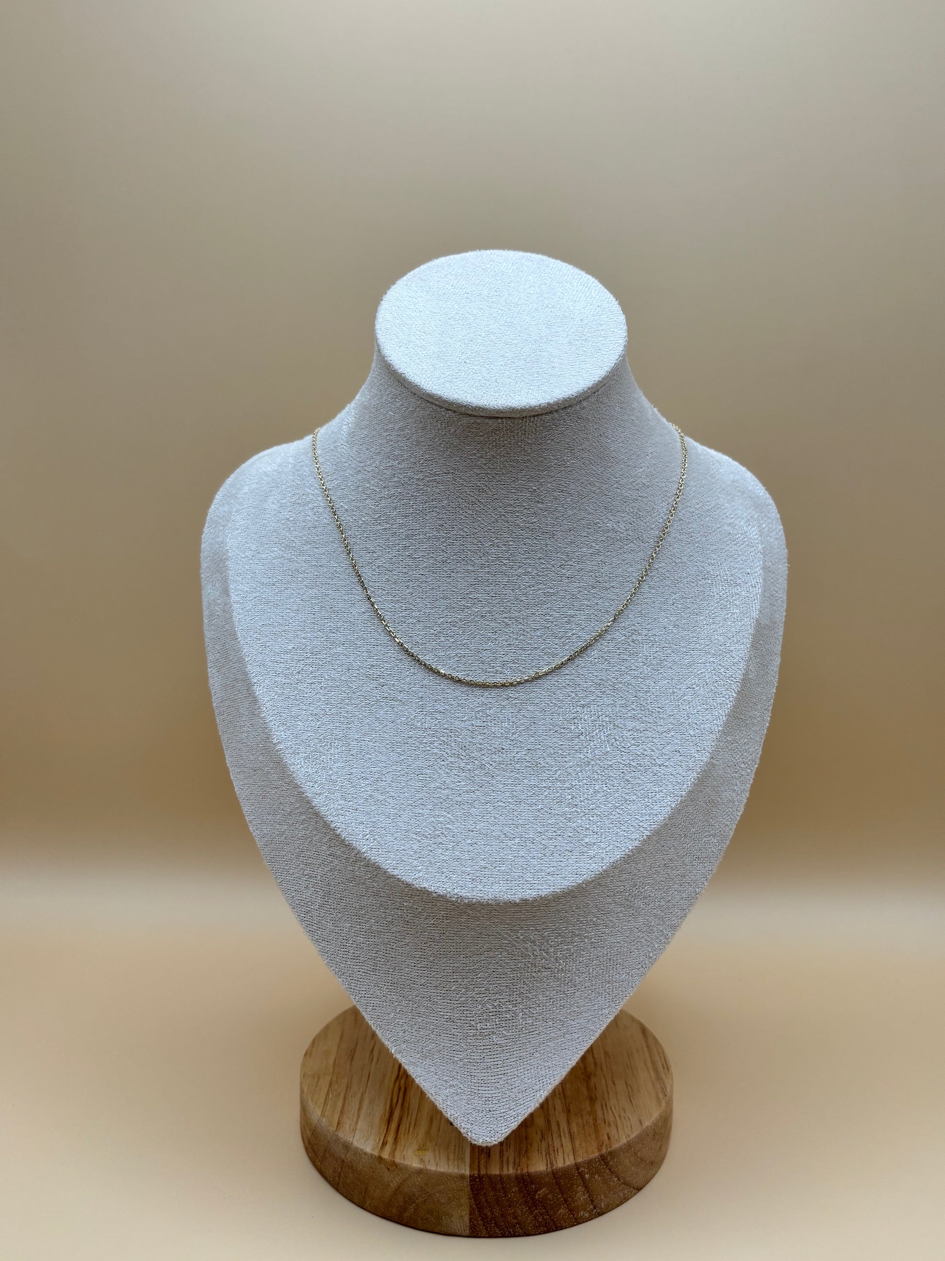 Crafted in 14k solid yellow gold, this elegant 1.2mm diamond-cut cable chain is a timeless essential. Its fine links and subtle sparkle make it perfect for layering or showcasing delicate pendants. Durable yet lightweight, it's a staple piece for everyday luxury.